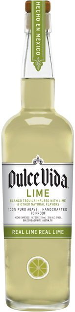 "Dulce Vida Lime Tequila is handcrafted from 100% blue agave, then infused with lime and natural flavors and uniquely blended. Enjoy as a shot, on the rocks or simply add sparkling water. Gluten Free." Tasting Notes