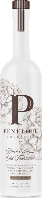 "Crafted for backyard soirees, casual moments at home, and everything in between. The Penelope Black Walnut Old Fashioned is made with straight bourbon and rye whiskey, black walnut bitters, and vanilla demerara. This is our modern take on a classic cocktail. Delicious and always ready to pour." Tasting Notes