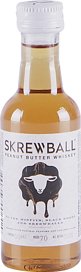 "Skrewball started from the passion of a bartender and foodie who owned a local watering hole. When he first combined his favorite classics?peanut butter and whiskey?to create the most delicious shot, many snubbed their nose at this idea. But, it didn't take long before it became their signature shot. He teamed up with his wife to create Skrewball Peanut Butter Whiskey. American Whiskey with premium natural flavors sweetened with pure cane sugar. Gluten Free and Vegan." Tasting Notes