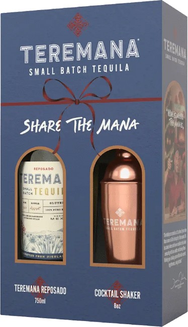 "Tera" is meant to represent 'Terre' which means of the earth and 'Mana' is our powerful Polynesian spirit that guides us. Spirit of the earth. The goal is to create a tequila that is the best of quality and taste, but done the right way ? by hand. Small batch, hand crafted tequila from Teremana blue agave, maturing in the highlands of Jalisco, for everyone to enjoy." Distiller's Notes Gift set includes one 750ml bottle of Teremana Reposado and a cocktail shaker.