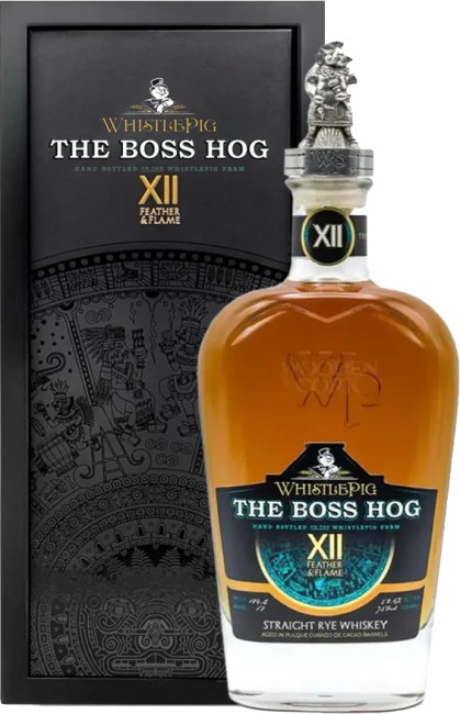 "Unites the wild fermentation of pulque with the rich, peppery chocolate of xocoatl. After an era aging in New American Oak, our best Straight Rye Whiskey is finished in a pulque curado de cacao barrel - where earthy complexity, rich cacao, and the flavors of a trifecta of Mexican pepper are forged with the bold character of Straight Rye Whiskey. Limited Edition, Bottled at Proof, and crowned with a handmade pewter pig topper, The Boss Hog XII: Feather & Flame is the twelfth divine chapter in The Boss Hog collection."